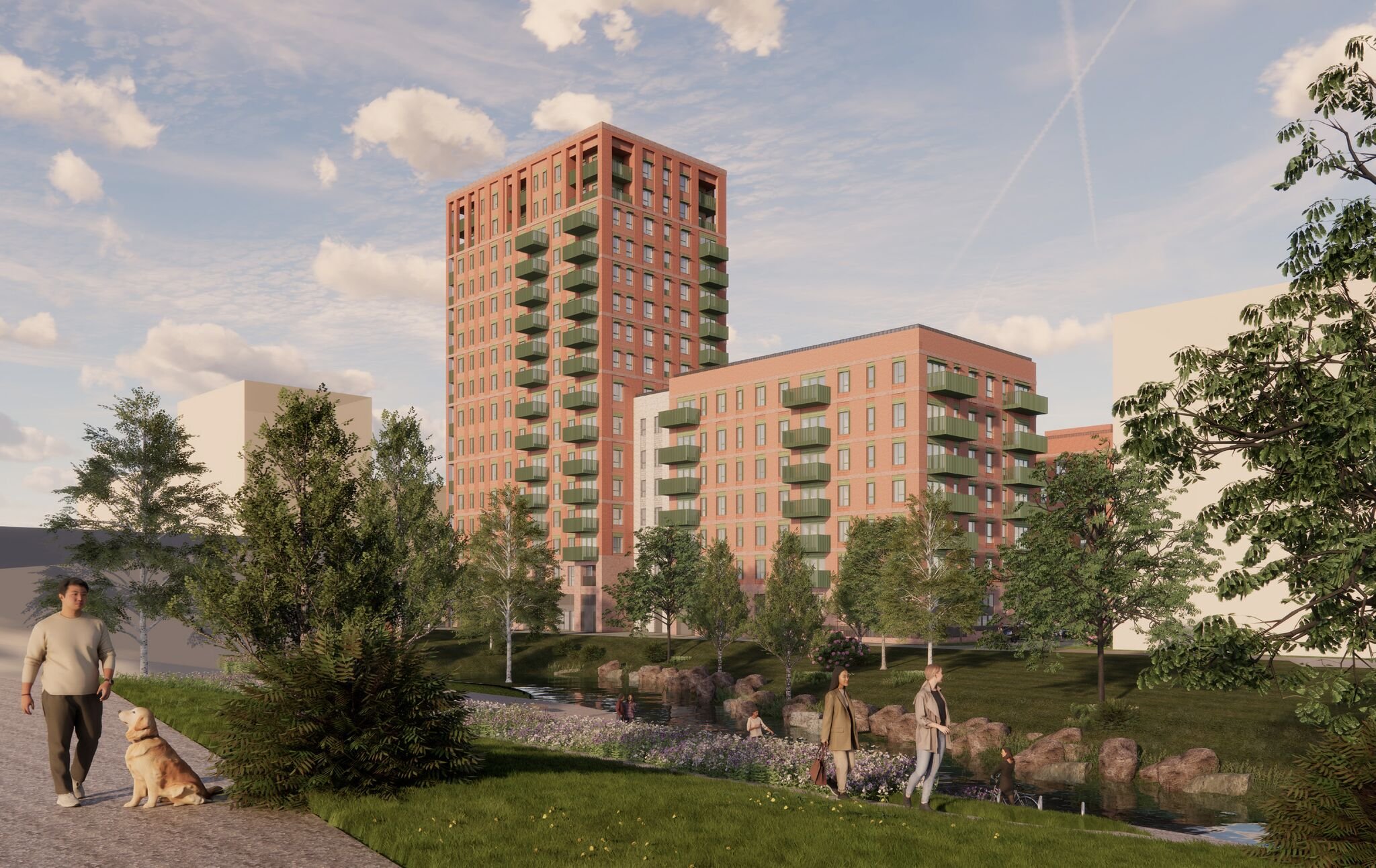 The approved scheme delivers 262 new homes, all 100% affordable- an uplift of 29 homes from the original consent, alongside the removal of a large ground-floor car park and its replacement with high-quality landscaped amenity space.